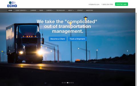 The first image shows a website design with a large image of a truck on the left side. The truck is depicted at night with its headlights on, driving on a road. Above the truck, there is a banner with the text \'We take the "complicated" out of transportation management.\' Below the truck, there are two buttons labeled... | Home - Echo Global Logistics | ee4281907492f597433dd98491902ace7dde03ab1ab59ce98fc1e39baee9af71 | 000720966375 | 0 | 0 | 87 | 5 | 0 | 0 | |