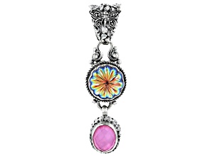 A silver necklace with a pendant featuring a colorful gemstone and intricate designs. | Rose Pink Mother Of Pearl Doublet Silver Pendant 2.76ctw | bf200509a6f5a968a63d5c4efa612637f11b3a3c8749b6556693ea4546c41391 | 000720966353 | 0 | 0 | 13 | 9 | 0 | 0 | |