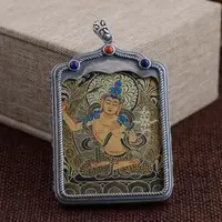 A silver pendant with a detailed design featuring a central figure surrounded by intricate patterns and a smaller figure in the upper left corner. The pendant is set against a beige background, and the central figure appears to be a deity with a serene expression. | NEW 925 Silver Tibetan Manjushri Buddha Thangka Pendant Necklace Pure Silver Tibetan Manjushri Buddha Statue Necklace Pendant | f8cded491f74752c92dac3c41ed6cf749f77a4d3c6c588aba191131468a93e78 | 000720966891 | 0 | 0 | 45 | 17 | 0 | 0 | |
