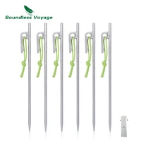 A set of five silver camping stakes with green nylon straps is displayed against a white background. The stakes are arranged in a vertical line, with the smallest stake at the bottom and the largest at the top. The word 'BOUNDLESS VOYAGE' is written in green at the top left corner of the image. | boundless voyage tent pegs titanium stakes lightweight tent nails heavy duty outdoor camping accessories for hard soil 20cm | f98f759547c6dad84da622f4908865316b5c81c29c4ff9cb516ec2335b9fdf12 | 000720966972 | 0 | 0 | 54 | 18 | 0 | 0 | |