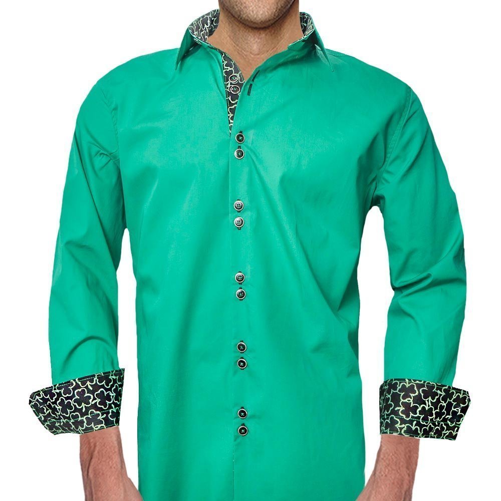 A man is wearing a green shirt with a patterned collar and cuffs. | Mens St Pattys Day Dress Shirts - Made in the USA | b8de97e63f37e2f6e3f6075e5c045be5631c70a211d6c6189ba7bc67b816baa5 | 000720966876 | 0 | 0 | 13 | 11 | 0 | 0 | |