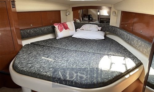 The first image shows the interior of a luxurious bedroom with a large bed that has a gray and white patterned comforter. The bed is adorned with two pillows, one of which has a red bow on it. The room has wooden paneling on the walls and a large mirror reflecting the bed and the room's interior. There is a window with... | Image of Sea Ray 375 DA Sundancer for sale in Slovenia for \xe2\x82\xac99,500 (\xc2\xa383,963) Slovenia | 770dc35d3564e97f73eb113c7cb6e7040817c4089b750f05c6738956febddff4 | 000720967040 | 0 | 0 | 75 | 15 | 0 | 0 | |