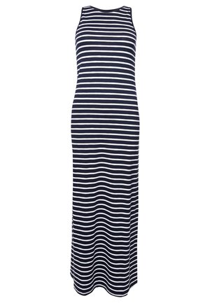 A black and white striped dress with a fitted bodice and a flared skirt is displayed against a white background. | Maxi dress - eclipse navy stripe | 79975ce0191b813c7ec61c3dd4a58a0a842f3bc5cc6d4b8de2b9e0ca6d3104ef | 000720967028 | 0 | 0 | 20 | 6 | 0 | 0 | |