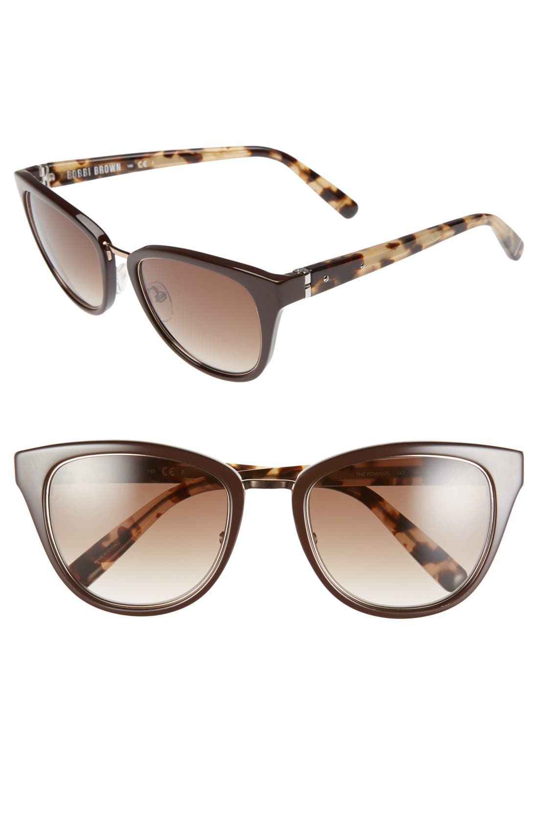 A pair of sunglasses with a tortoiseshell pattern on the frame and a gradient lens that transitions from dark at the top to light at the bottom. The sunglasses are positioned with the left lens facing the viewer and the right lens facing away. | BOBBI BROWN,\n 'The Rowan' 53mm Cat Eye Sunglasses,\n Main thumbnail 3, color,\n 200 | 2cab90eccdab4a2f7f4c8b2a45647733dce3eac58a7f750e661c386a671b9323 | 000720967093 | 0 | 0 | 44 | 13 | 0 | 0 | |