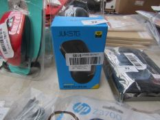 A blue box with a white label that reads 'JUST' and a barcode is placed on a table surrounded by various items. There are other boxes, a pair of sunglasses, and a laptop in the background. | JUKSTG wireless mouse, unchecked and boxed. | abdfad22c73712100534540e615cdd2e93a1769e3498896791b205244642a3c0 | 000720966766 | 0 | 0 | 36 | 6 | 0 | 0 | |