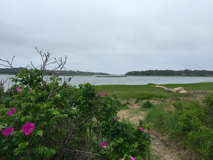 A serene landscape featuring a body of water with a small island in the center, surrounded by a lush green field. The sky is overcast with a mix of light and dark clouds, suggesting an impending change in weather. A dense cluster of pink flowers is prominently displayed in the foreground, with a variety of green foliag... | Orleans Cape Cod vacation rental - Pochet Inlet (140 steps away!) | 280c17f5a6874b9ebbde9c2a487a1f3f728cf0385d23fa7f9057362165e7245d | 000720967144 | 0 | 0 | 67 | 11 | 0 | 0 | |