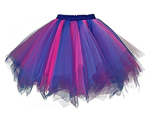 A blue and pink tutu skirt with a blue waistband is displayed against a white background. The skirt has multiple layers of ruffled fabric, with the top layer being blue and the bottom layer being pink. The waistband is a solid blue color and is tied in a bow at the back. | HotQueen Women's 1950s Vintage Tutu Ballet Half Slip Skirt Bubble Dance Royal Blue (Royal Tutu Blue) | 29ffade5a188543c454f30eb20ad71a89ff3b3693011271adce69a9f848492fc | 000720967632 | 0 | 0 | 52 | 16 | 0 | 0 | |