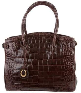A brown leather handbag with a textured surface and a gold-tone metal zipper pull. The bag has a top handle and a shoulder strap with a gold-tone metal buckle. There is a circular gold-tone metal logo on the front of the bag. | Cece Cord Crocodile Satchel | 3efdf869fd1baa5060a7fa74585b799d73956aa1c8c7bafa3cd14d5bf0bffaba | 000720968216 | 0 | 0 | 42 | 4 | 0 | 0 | |