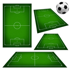 A collection of four soccer field diagrams with a soccer ball in the top right corner. Each diagram shows a different perspective of a soccer field with goalposts, penalty areas, and markings for the field. The fields are all green with white lines and markings. | Illustration of a soccer field and soccer ball | 44c499fc25b0d5a97699a0e11535fa24f5f049a5b81091bcf5b1e1bf27599ec4 | 000720968349 | 0 | 0 | 45 | 8 | 0 | 0 | |