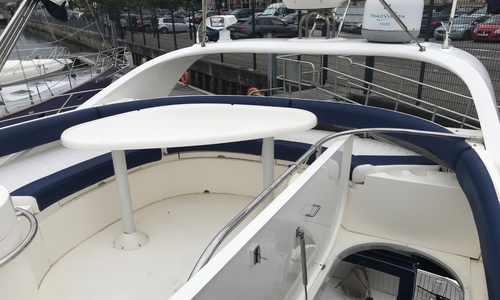 The first image shows the interior of a boat with a white and blue color scheme. The boat has a white ceiling with a blue stripe running along the top edge. There is a white table with a blue cushion on top, and a white railing with blue accents. The floor is white, and there is a small opening in the floor that leads ... | Image of Fairline Phantom 46 MKII for sale in United Kingdom for \xc2\xa3249,950 Weymouth, United Kingdom | facd2372658afb9f0a3d1d7feaf82cc3fdef6530084d23ed3fcb5e93de111f73 | 000720969239 | 0 | 0 | 90 | 16 | 0 | 0 | |
