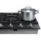 A stainless steel pot is placed on a modern gas stove with a black finish. The stove has a flat top with four burners, each with a silver knob. The pot has a curved handle and is positioned to the right of the stove, slightly above the burners. | Samsung 30" Gas Cooktop in Black Stainless Steel, Black, large | 120e6b554d4de32f72861923eec81ed1230093a5dac0accbe7f6ed325be51601 | 000720968969 | 0 | 0 | 48 | 10 | 0 | 0 | |