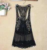 A black lace dress with a high neckline and long sleeves is displayed on a hanger against a beige wall. The dress has a fitted bodice with a deep V-neckline and a flared skirt. A floral arrangement in a white vase is visible to the left of the dress. | Hot New Women Lace Tunic Sexy Swimsuit Bikinis Smock Cover Up Cotton Blouse Pareo Sweet Lady | 4153e77f297270c19ef0a3a53b4bc6c58e33dc865f81989049a8ed81779254b0 | 000720970135 | 0 | 0 | 49 | 16 | 0 | 0 | |