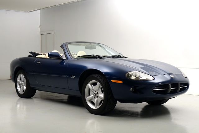A blue convertible sports car with a soft-top roof is parked in a white showroom. The car has a sleek design with a prominent front grille, round headlights, and a rear spoiler. The interior is visible through the open top, showing two seats with white upholstery. The car is positioned on a reflective floor, and the sh... | 1997 Jaguar XK8 Convertible* One Owner* 46K Miles*** | Plano, TX | Carrick's Autos in Plano TX | 58bb26df5dea9883b6edd87fd7cc70f11c8a91dba5afa0a3c2c39e13bfe8484b | 000720971462 | 0 | 0 | 65 | 17 | 0 | 0 | |