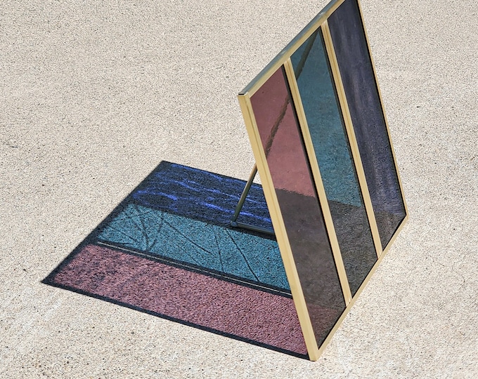 A modern, abstract painting with a geometric design featuring a variety of colors such as blue, red, and green, displayed on a wall. | will | Intention Pane | LEAD FREE Stained Glass Sun-Catcher | Interior Design | Home Decor | Handmade Gift | 8f1e856eb6bf9440b53183745903c617139c1eece912d496d53f68f73f15a457 | 000720971475 | 0 | 0 | 23 | 19 | 0 | 0 | |