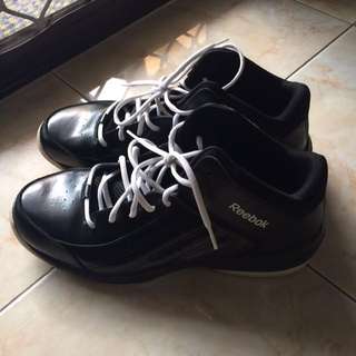 A pair of black Reebok sneakers with white laces is placed on a tiled floor. The sneakers are positioned with the left shoe in the foreground and the right shoe in the background. The laces are tied in a bow, and the shoes are casting a shadow on the floor. | reebok basket shoes | 59d9e3c9aac9565eaeb81d345a024b19f0feab2e6ab7ef4be986eb3e8cf11232 | 000720971488 | 0 | 0 | 50 | 3 | 0 | 0 | |