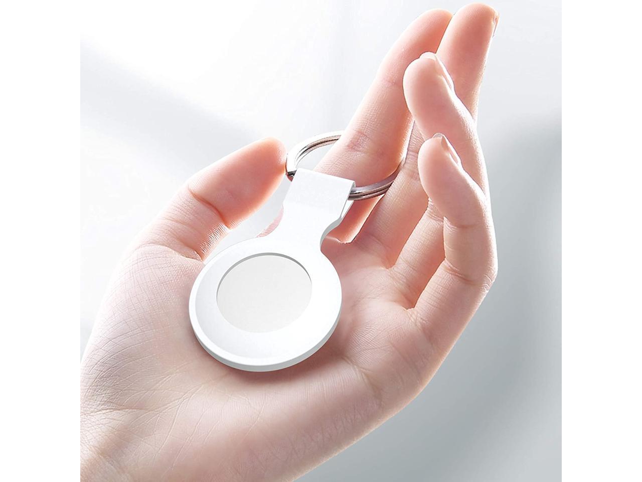 A person's hand is holding a white key fob with a circular button on top. The fob is white with a silver ring at the top. The hand is positioned in front of a white background, and the lighting is soft and diffused, highlighting the contours of the hand and the fob. | Auyuiiy Case for Airtag Portable Cover with Keychain Finder Silicone Skin with Key Ring 2 PCS Black White | a10dfae25cce3f934228b62d5d159450b1434cd2ac47acf7632e6175090c369f | 000720931182 | 0 | 0 | 52 | 18 | 0 | 0 | |