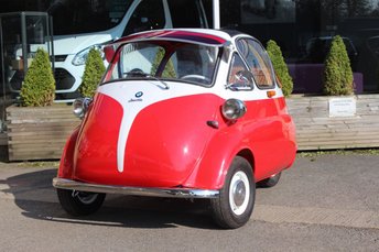 A red and white vintage car with a classic design is parked on a driveway. The car has a rounded body, a prominent front grille, and a small windshield. It is positioned in front of a building with a glass door and a wooden fence. There are two potted plants on either side of the car, and a white van is visible in the background. | View our BMW ISETTA | d668f420a078dbc8366d4b4c61285b3c4cb8240e2a96cf92589b4d59fa8b9fa3 | 000720931098 | 0 | 0 | 65 | 4 | 0 | 0 | |