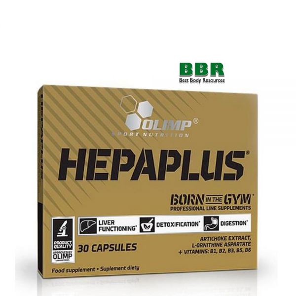 A product image of a supplement called 'HEPAPLUS' with the brand name 'OLIMP' and the tagline 'BORN TO GYM'. The supplement is in a brown box with a green BBR logo in the top right corner. The box has a black and gold design with a hexagonal pattern and the words 'HEPAPLUS' in large white letters. The supplement is des... | Hepa Plus Sport Edition 30caps, Olimp Nutrition | ae78dc4a87ae9cb71f20feba8b77e494dfb3815879c7f22dd9b144f595344bf9 | 000720972140 | 0 | 0 | 75 | 7 | 0 | 0 | |