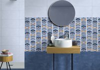 A modern bathroom with a large mirror above a wooden vanity. The vanity holds a white sink and a white soap dispenser. The wall behind the vanity features a decorative tile design with blue and white patterns. To the left of the vanity, there is a small wooden stool with a pink towel on top and a white cup. The floor i... | Bathroom Wall Tiles | 39bc2f0da8811e97f0e613c0627168c0b13320c05dc7d4a3c89b0dadd5465d82 | 000720972157 | 0 | 0 | 72 | 3 | 0 | 0 | |
