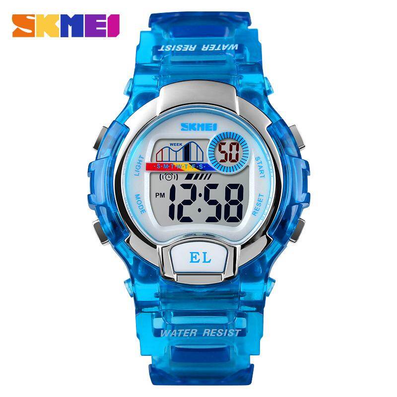 A blue digital wristwatch with a silver bezel and a white digital display showing the time, date, and other information. The watch has a water-resistant design and is branded with the word 'SKMEI'. The watch face is surrounded by a blue rubber strap with a buckle closure. | New Unisex Sports Candy Wrist Watch Creative Blue Rose Red Color Activity For Boys And Girls Chirdren Kids Gifts 2018 Watches | 14fd5b80692ba4ca7e7940185922239acc147f1a6c9b73c7c9cb51b9101dd117 | 000720972216 | 0 | 0 | 47 | 21 | 0 | 0 | |