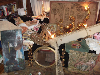 A cluttered room filled with various antique items, including a large ornate mirror, a chandelier, and a collection of framed paintings and photographs. The room has a vintage feel with a mix of patterns and textures, and the lighting is warm and ambient. | La Belle Helene Detroit My Great Finds Antiquing At The | 543fb01b8ce1f93901e2de17d68db261f9d0150be4a0c9782e36f1c685758553 | 000720973137 | 0 | 0 | 43 | 10 | 0 | 0 | |
