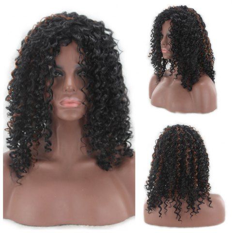 A mannequin head with curly black hair is displayed against a white background. The mannequin head is positioned at an angle, showing the front and side views of the hair. The hair is voluminous and has a natural, wavy texture. The mannequin head is also shown from the back, highlighting the curly texture of the hair. | Store Medium Side Bang Shaggy Highlight Curly Synthetic Wig COLORMIX | 39761c3e3ee18a3d09db9853e373ad21c01449d504748c698925667e4f824b23 | 000720973129 | 0 | 0 | 56 | 10 | 0 | 0 | |
