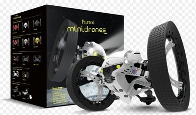 A white and black remote-controlled drone with propellers is displayed in front of a box with the word 'PARROT' on it. The drone has a sleek design with a camera on the front and a logo on the side. The box has a list of features and specifications in a foreign language. | Parrot Minidrone Buzz Jumping Night Drone White New in Box | 8a62d3374e9c17209465efd5807126eeda935ce94080272f4c38dd7c217b2069 | 000720973215 | 0 | 0 | 52 | 10 | 0 | 0 | |