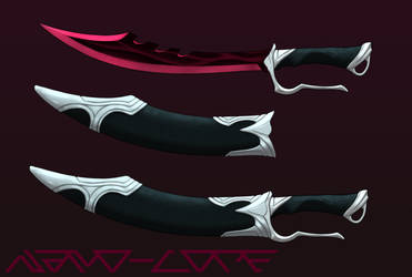 A set of three fantasy-style swords with intricate designs, displayed against a dark background. The swords are arranged in a vertical line, with the largest sword at the top and the smallest at the bottom. Each sword has a hilt with a unique design and a blade with a different color pattern. The largest sword has a re... | Bloodrazor Scimitar Weapon Auction Adopt (closed) by Nano-Core | 99769743dab7ca6e4ef2218b3058c1ce8403012825356231a25794e1422bbdd3 | 000720973127 | 0 | 0 | 109 | 8 | 0 | 0 | |