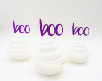 A collection of white cupcakes with swirls of white frosting on top, arranged in a row on a white surface. Above the cupcakes, there are two purple banners with the word 'BOO' written in a cursive, bubbly font. The banners are positioned at an angle, with one on the left side and the other on the right side of the imag... | Halloween Cupcake Toppers, Boo Cupcake Toppers, Halloween Food Picks, Halloween Party Decor, Halloween Party Supplies, Fall Party Decor, | 85efcea4f744967dfdf648d051626aaa1318cebad5fe052a73e129879038433e | 000720973159 | 0 | 0 | 61 | 18 | 0 | 0 | |