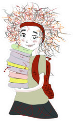 A stylized illustration of a young girl with curly hair wearing a red headband and a green shirt with a red backpack. She is holding a stack of books with various colors. The image has a vibrant and artistic appearance with visible brush strokes and a dynamic color palette. | Schoolgirl With A Stack Of Books And A Backpack Sticker | ea6bfb2da502ae389eac57e97b7216fe65b390b63a7b2d10568ec327f3d27a44 | 000720973478 | 0 | 0 | 49 | 10 | 0 | 0 | |
