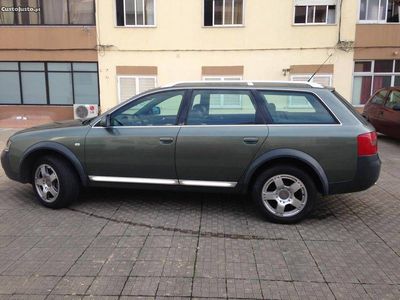A green SUV is parked on a cobblestone driveway in front of a building with a beige facade and a window with white frames. The SUV has a black roof rack and a spare tire mounted on the rear door. There is a small red car parked to the right of the SUV. | usado Audi A6 Allroad 2.5 TDI 180HP - | 803d12bd2256d4c1b38503ea3f436d022f1439072311703029cfa347f4ac2ac0 | 000720973551 | 0 | 0 | 53 | 8 | 0 | 0 | |