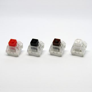 A set of four computer keyboard keys is arranged in a row on a white background. The keys are transparent with different colored legends: red, black, brown, and white. The keys are positioned from left to right, with the red key on the far left, followed by the black key, the brown key, and the white key on the far rig... | Kailh Box Switches | 8e913073d846dc13b26bade8750940c7af0a8d2691f2bc2170ff3d38ccf85018 | 000720973652 | 0 | 0 | 61 | 3 | 0 | 0 | |