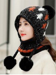 A person is wearing a black and white winter hat with a red and white pattern on the front, a black scarf with a red and white pattern, and a white sweater. | Christmas Tree Winter Knit Ear Bubble Hat - | ed2f00b4117d95d432cd47dddbbff1670083ef4e35ed7c10013167cbadd35ef8 | 000720973602 | 0 | 0 | 32 | 8 | 0 | 0 | |