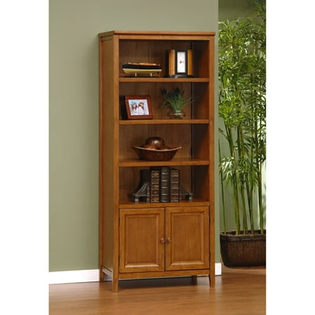 A wooden bookshelf with a variety of items on it, including books, a bowl, a small potted plant, and a framed picture. The bookshelf is placed against a green wall and is situated on a wooden floor. There is a large potted plant to the right of the bookshelf. | Canopy Cornerstone Bookcase, Chestnut Finish | 243786858cec7e01a33281cd2c75ed223f3a03591c180f5f77ed80602c5507f7 | 000720973581 | 0 | 0 | 49 | 5 | 0 | 0 | |