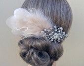 A close-up of a woman's hair with a detailed view of the hair and the hair accessories. The hair is styled in a bun with a white feather-like hairpiece and a cluster of silver beads. The background is a plain, light color. | Bridal Fascinator. Wedding fascinator, Accessories, Ivory, white, hair comb, feathers, Rhinestones. Hairpiece. | 309aaa1b96adca52ecc3d5b41e1970ef802a8cb5cbad537df5c673c480f028da | 000720973723 | 0 | 0 | 42 | 12 | 0 | 0 | |