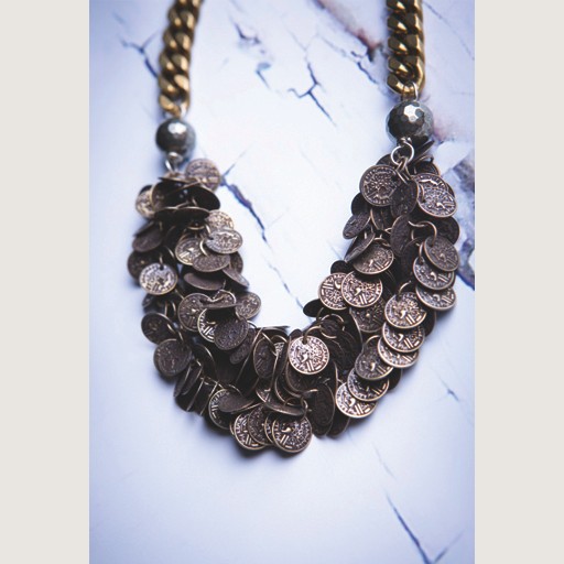 A close-up of a silver necklace with a textured, coin-like pendant featuring a pattern of concentric circles and a central dot. The pendant is adorned with multiple smaller, similar coins, creating a layered effect. The necklace is set against a cracked white background with a subtle blue tint. | Mark Edge Jewelry Brass Ox Coin Chain, 16" Pyrite Chain Necklace or Bracelet by Mark Edge | 64e2b1c0f33dde92c360bae0b7b424799203d6fbc27915a49c9e6caba347abc0 | 000720973670 | 0 | 0 | 48 | 16 | 0 | 0 | |