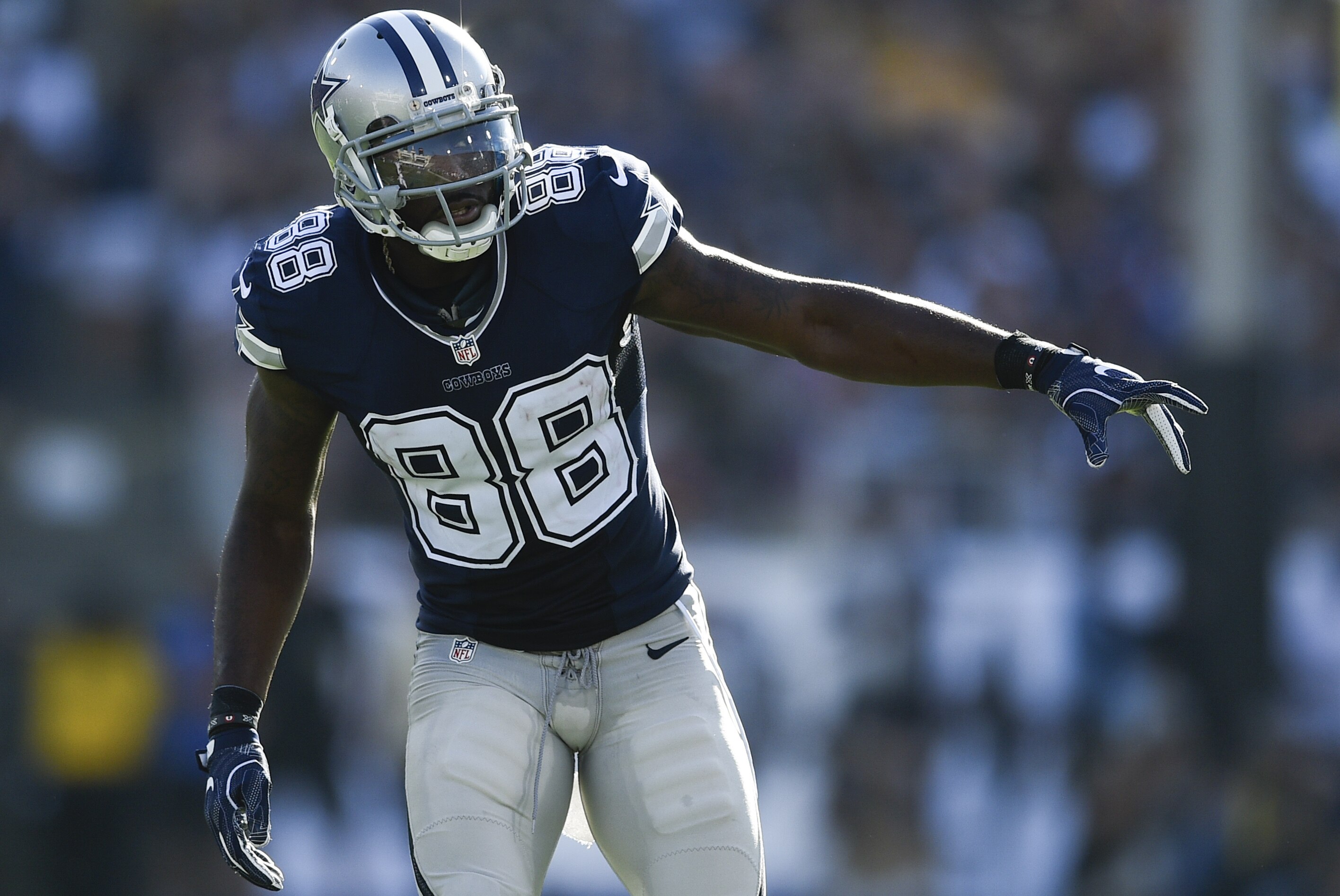 A football player in a blue and white uniform with the number 88 on the front and back is standing on a field. He is wearing a helmet with a blue and white design, and his right hand is raised as if signaling a play. The player is looking to his left, and there is a crowd of spectators in the background. | Dez Knee Officially Active Vs Eagles Bleacher Report | 2db8d6d22f95061369c965740594220fc8c589c82f5859d8fce605dda2b47137 | 000720973902 | 0 | 0 | 62 | 8 | 0 | 0 | |