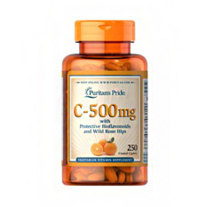 A bottle of Puritan's Pride C-500 mg with a label that reads 'Protective Antioxidant and Wild Rose Hips' and '250 Tablets'. The bottle is orange with a white cap and contains orange pills. | Ulasan Lengkap Tentang Puritan S Pride Vitamin C 500 Mg With Bioflavonoids Rose Hips 250 Caplets | 3e06a6cd01ccb340222327eba455eb9ea4a56977cb388120b9f60a8e2324c47b | 000720974598 | 0 | 0 | 33 | 16 | 0 | 0 | |