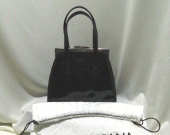 A black leather handbag with a shiny finish is placed on a white cloth with a 'Gucci' logo. The handbag has a structured design with a top handle and a chain strap, and it is positioned against a white background. | Dolce & Gabbana Black Purse Patent Leather Made in Italy | 8f911816308cc72fd8e86fa860c7ac4668cf64df99ec6cb1e420c8457f28fa5c | 000720975847 | 0 | 0 | 40 | 10 | 0 | 0 | |