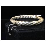 A silver bracelet with a chain and a clasp is displayed on a black velvet cloth. | Sterling hinged bracelet, 22.3g | 6619952f64ae560140074b19b496b7560edc97f4c3a7bfd9cb6149b298e5cc95 | 000720975803 | 0 | 0 | 16 | 4 | 0 | 0 | |