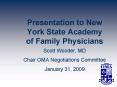 A presentation slide titled 'Presentation to New York State Academy of Family Physicians' with a speaker's name, Scott Woker, M.D., and a date, January 21, 2006. The slide features a blue background with a white logo at the bottom right corner. | Presentation to New York State Academy of Family Physicians PowerPoint PPT Presentation | 9fc35c7375f5a28fb53ca01e386479b93e43a3296854c607fb215a22a90b5767 | 000720975753 | 0 | 0 | 41 | 12 | 0 | 0 | |