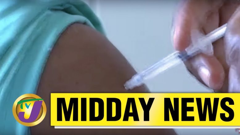 A person's arm with a vaccination injection being administered. The person is wearing a light blue shirt, and the vaccination is being given by another person's hand, which is holding a syringe. The scene is overlaid with text that reads 'MIDAY NEWS UPDATE' in yellow, with a green and yellow logo at the bottom left cor... | Get Vaccinated | Party & Church Can Keep - Says Jamaica's PM - March 19 2021 1 | 47f6426729985fd8ac499e607cffcc5d9c848b5351e1ed34ba08162c65558b0a | 000720975710 | 0 | 0 | 56 | 17 | 0 | 0 | |