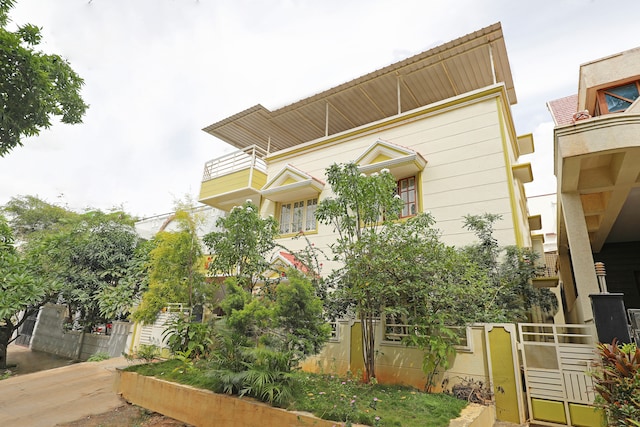 A two-story house with a yellow and white color scheme is surrounded by lush greenery. The house has a flat roof with a wooden structure and a balcony with a railing. There are two windows on the upper floor and three on the lower floor. The house is flanked by tall trees and a variety of plants, including a large tree... | OYO Home 45705 Elegant Villa Near Gopalan Cinemas | c345514a0ab28436e70f4399f7f58e9e29dba90fc54f9be2dc3718eae7b04343 | 000720975822 | 0 | 0 | 90 | 8 | 0 | 0 | |