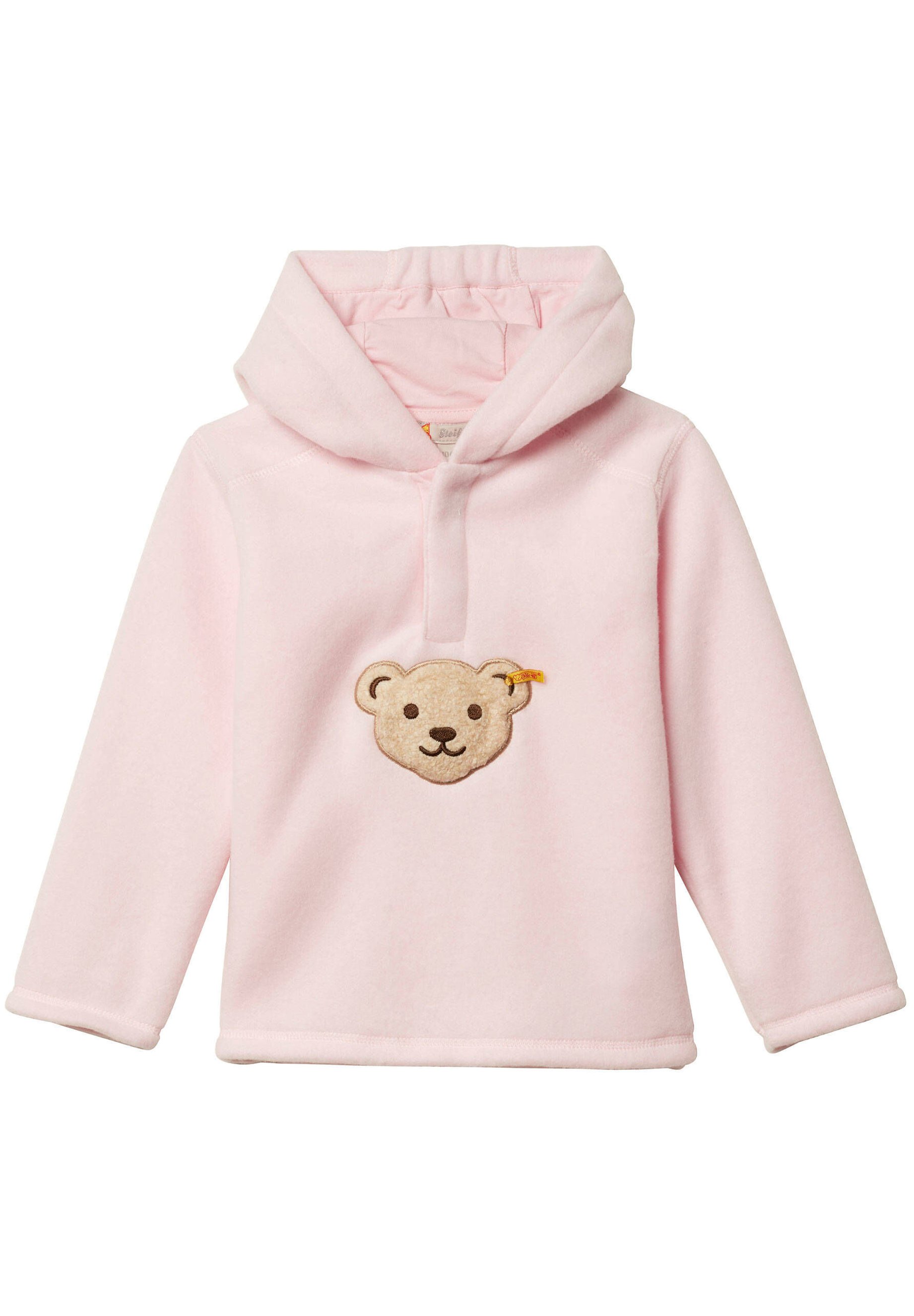 A pink hoodie with a teddy bear patch on the front is displayed against a white background. The hoodie has a zipper and a hood, and the teddy bear patch is centered on the chest area. | Steiff Kapuzenpullover - rose/rosa | 95afaaba7d40dcb275773644687aeaaacd13e018c69808e12da7467290e7c550 | 000720975987 | 0 | 0 | 36 | 4 | 0 | 0 | |