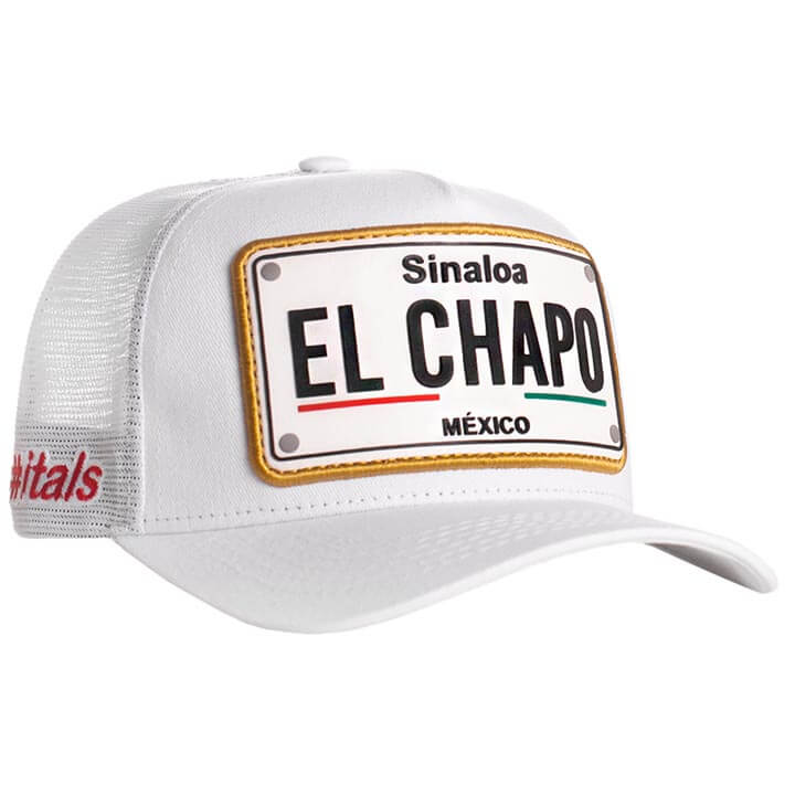A white baseball cap with a gold embroidered patch that reads 'SINALOA EL CHAPO MEXICO' in a circular design. The cap has a red logo on the left side and is displayed against a white background. | Bon\xc3\xa9 #Itals El Chapo Branco Shine | efd330026fc7a7abe768a6cfc6d1f36de9f4b6d7c0ff4cf82c22effca8599534 | 000720975950 | 0 | 0 | 36 | 6 | 0 | 0 | |