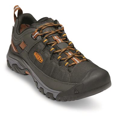 A pair of black and brown hiking boots with a rugged sole and a lace-up closure system. The boots have a textured upper material and a prominent brand logo on the side. The laces are brown and braided, and the boots are placed against a white background. | KEEN Men's Targhee EXP Waterproof Hiking Shoes, Raven/Inca Gold | 12fe3a5666cd17a6b2b8852115b32ee29377b457d4861a960412a3a4d1b1c3c6 | 000720976073 | 0 | 0 | 47 | 9 | 0 | 0 | |