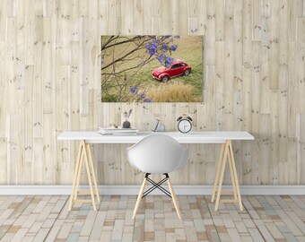 A modern white chair with a curved backrest and a black metal base is positioned in front of a white desk with a wooden frame. On the desk, there is a small potted plant, a clock, and a stack of books. A framed picture of a red car parked under a tree with purple flowers hangs on the wall behind the desk. The room has ... | Vw Beetle, Red Car, Vw Bug, VW, Volkswagen Beetle, Vw Print, Vw Photo, Photography Print, Large Canvas, Car Print, Car Photography | 1d45e7c309016a2ae21a9be9baecabc0b6e3c376e8b3a72394e1453a8f98060e | 000720975891 | 0 | 0 | 72 | 21 | 0 | 0 | |