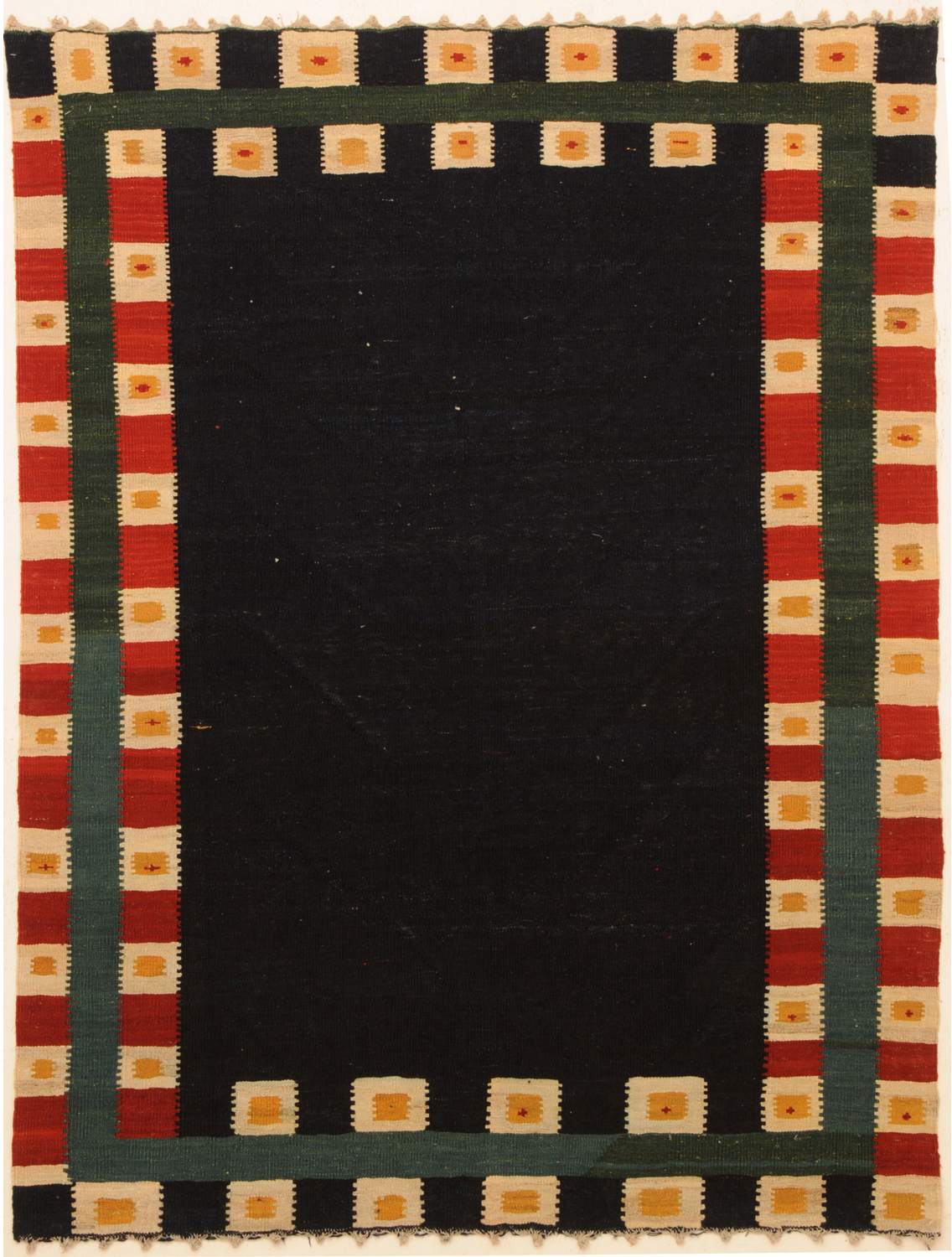 A traditional African textile with a dark blue background and a geometric pattern of red, yellow, and green stripes and shapes. | Kilim Rug 4'11" x 6'7" | 9f92aeab6f5cecc0519d841ba9c954cb0357ed7f70121010595a547341bbc9f4 | 000720976105 | 0 | 0 | 21 | 5 | 0 | 0 | |