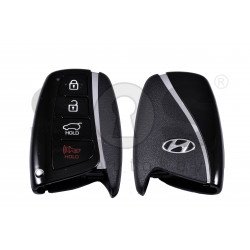A close-up image of two black car key fobs with a silver Hyundai logo on the right fob. The fobs have a black and silver design with buttons for locking, unlocking, and a panic alarm. The keys are positioned side by side, and the background is a plain white color. | OEM Smart Key for Hyundai Santa Fe 2015+ Buttons:3+1 / Frequency:315 MHz / Transponder:Tiris DST AES / Blade signature:HY22/HYU-45 / Part No:95440-4Z200/ Keyless Go | b1bce8c2d7114193325a84598cf60a11580d3bfa70b1cb37329aa0c0bd0f280e | 000720976569 | 0 | 0 | 50 | 24 | 0 | 0 | |