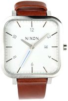 A silver wristwatch with a white dial, black hour markers, and a brown leather strap is displayed against a white background. The watch face shows the time as 10:10, and the brand name 'NIXON' is visible at the top. | Nixon Wrist watch | a07d54abee0f3743219d21700a2e26d866fb1d46a3234dfba84d3b88e4a0c572 | 000720976478 | 0 | 0 | 39 | 3 | 0 | 0 | |